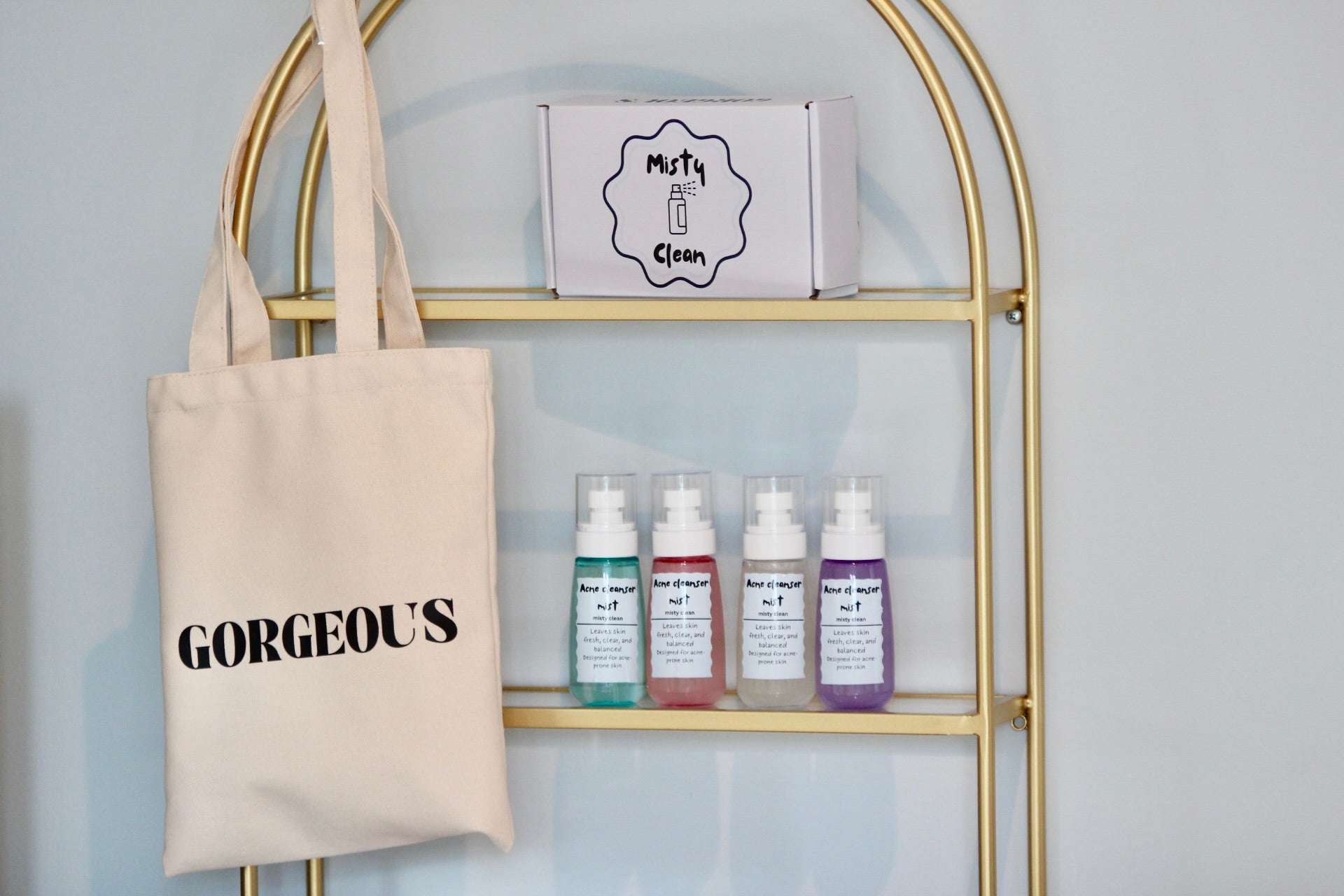 Meet your new cleansing obsession—a refreshing and acne preventing/killing mist that makes skincare fun. Just spray it on, give your face a gentle rub, and watch the magic happen. This hydrating cleanser whisks away dirt and makeup while keeping your skin happy and moisturized. No fuss, no mess, just glowing results in three simple steps. Transform your routine into a moment of pure refreshment.